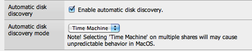 注意勾选 Automatic disk discovery - Enable automatic disk dicovery Automatic disk discovery mode - Time Machine